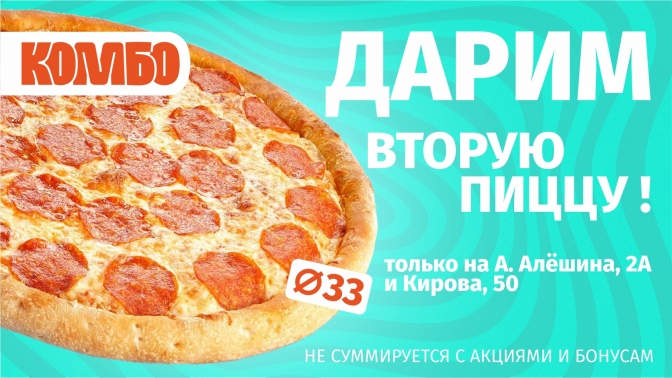 — скидка в размере 100% действует на пиццу равной или меньшей стоимости в чеке;